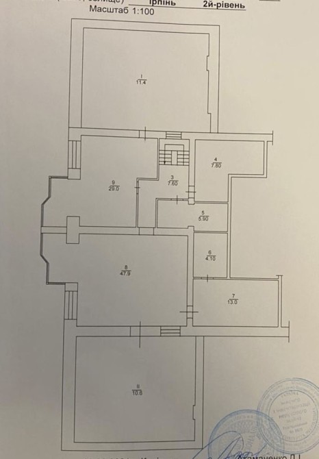другий рівень 110м2 - можна запланувати окремі три кімнати і велику кухню вітальню площею 25м2.