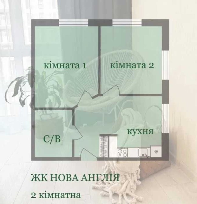 СУПЕР планування 1к квартира 41.11м² ЖК Нова Англія, БЕЗ КОМІСІЇ - фото 2