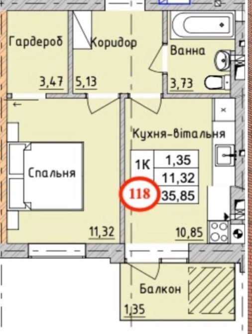 • Загальна площа 35.85 м2