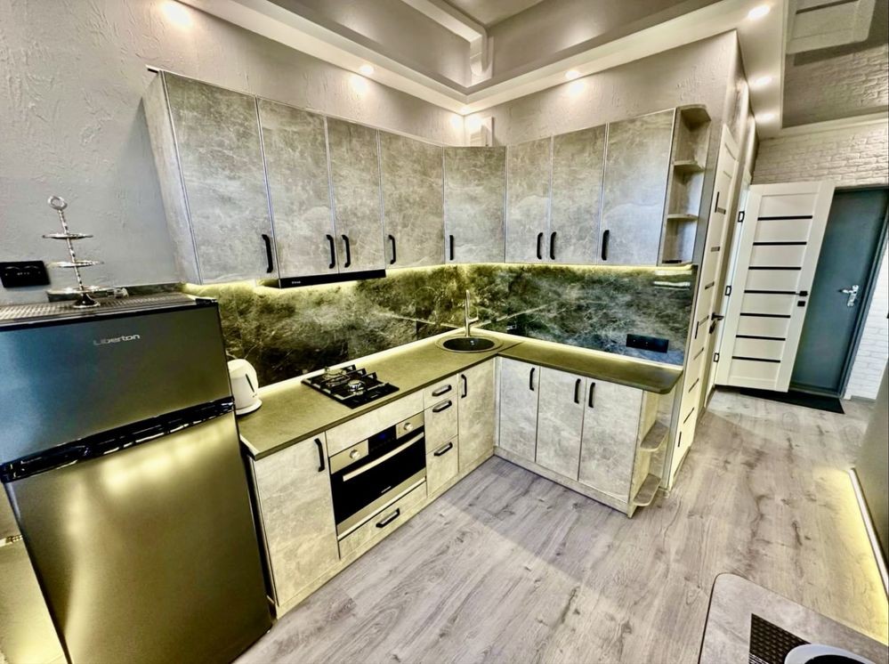 Оренда стильної 1 к кв з кухнею студією в новому будинку ЖК "Файна Таун" в Шевченківському районі, вул. Салютна, 2 Квартира 43 м2 , розташована на четвертому поверсі та складається з передпокою, спальні, великої кухні -студії та санвузла. Вікна квартири виходять в двір. Облаштована всіма необхідними меблями з екологічно чистої деревини та оснащена побутовою технікою: телевізор Samsung Smart 43, кондиціонери в кухні та кімнаті, плита індукційна, вбудований холодильник, духова шафа з функцією мікрохвильової печі, пральна машина з сушаркою. В кухні та ванній кімнаті тепла підлога, високошвидкісний інтернет. ЖК "Файна Таун" це: закрита територія з входом по картці, цілодобова охорона, відеоспостереження, паркінг, підземні контейнери для сміття, зарядні станції для електромобілів та лавки з інтегрованими батареями для підзарядки девайсів, розумне освітлення, яке підлаштовується під час доби та ще багато чого для того, щоб жити з комфортом й ні в чому себе не обмежувати) розповім при перегляді. Зручне транспортне сполучення та розвинута інфраструктура: магазини,спортивні та пішохідні зони ,зона барбекю, ресторани та кафе. Квартира, в якій поєднані комфорт та затишок, шукає своїх порядних орендарів молоду пару або одну людину без дітей та тварин. Перша оренда, квартира вільна.