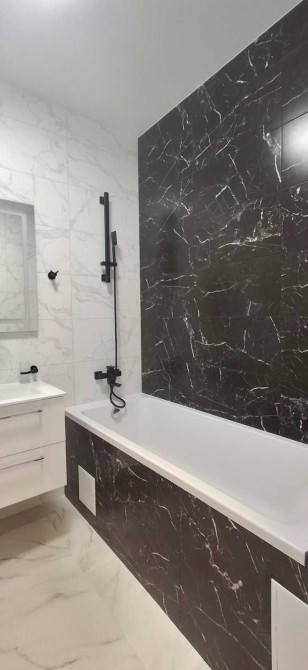 Санвузол — суміжний, уже обладнаний сантехнікою, є ванна. Приємним бонусом є тепла підлога, тож приймати душ або ванну завжди буде комфортно.