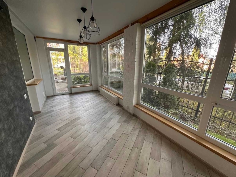 Загальна площа 40 кв.м. Окрема спальня та кухня-гостьова. Родзинками квартири є добудована веранда 13 кв.м. та міні сад. 1-й поверх 4-поверхового будинку.