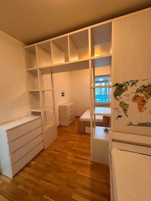 - Спальня: двоспальне ліжко 140*200, односпальне 90*200, 2 комоди, шафа, полички.