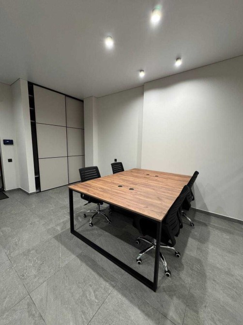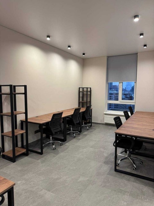 Сучасний офіс з відкритим плануванням, мебльований на 11 рабочих місь, окремо кабінет директора (переговорна), укомплектована всім необхідним кухня та санвузол.