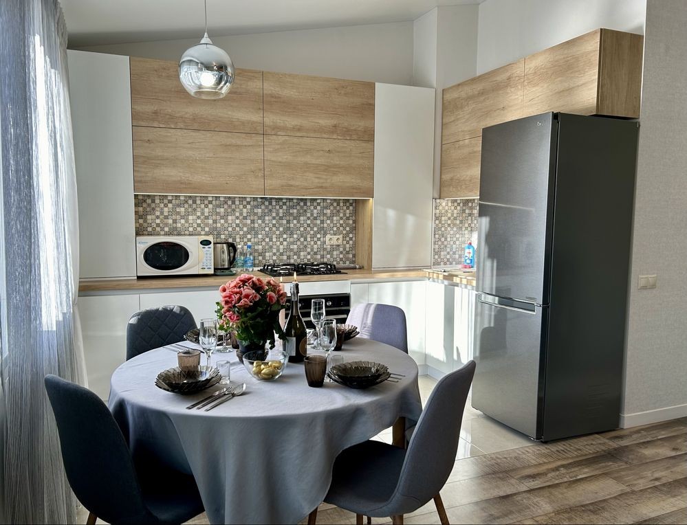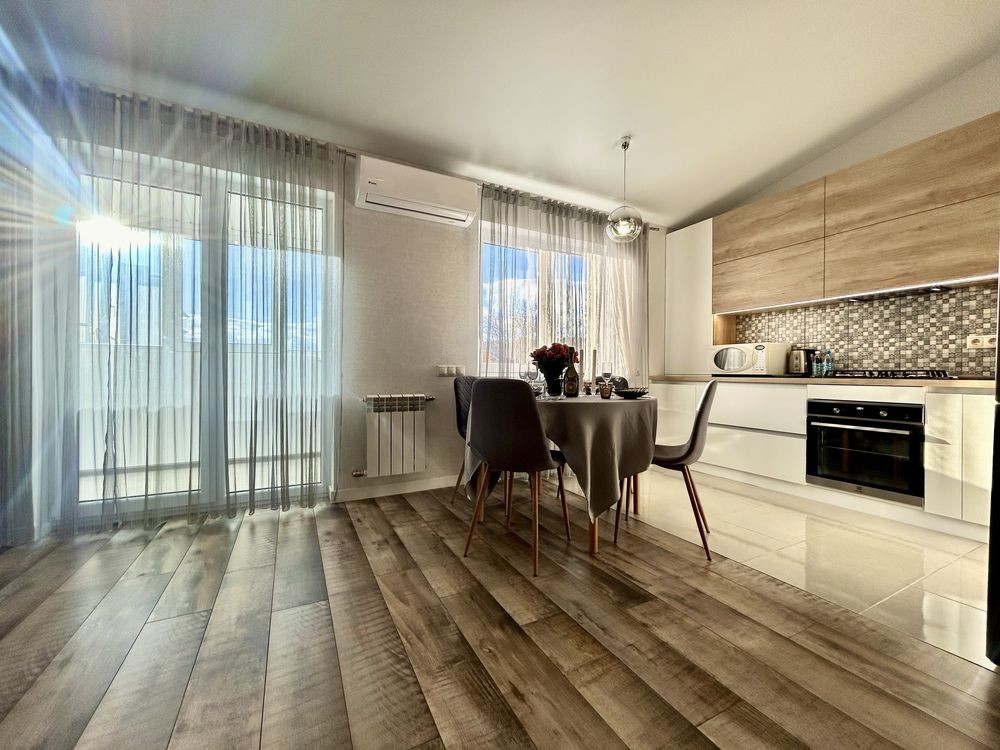 Доступна для бронювання та Вільна на Новий рік люксова квартира з новым ремонтом та автономным опаленням , закрытий комплекс зі своєю територією паркомісцями ялинками та дитячим майданчиком . Також безкоштовні альтанки з мангалом , шампури є у квартирі , котел працює також для горячої води . Для бронювання телефонуйте