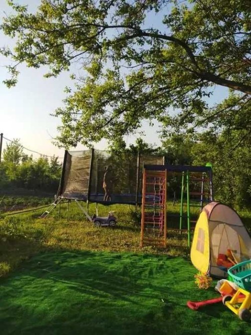 Ухоженный участок, имеются фруктовые деревья и кусты.