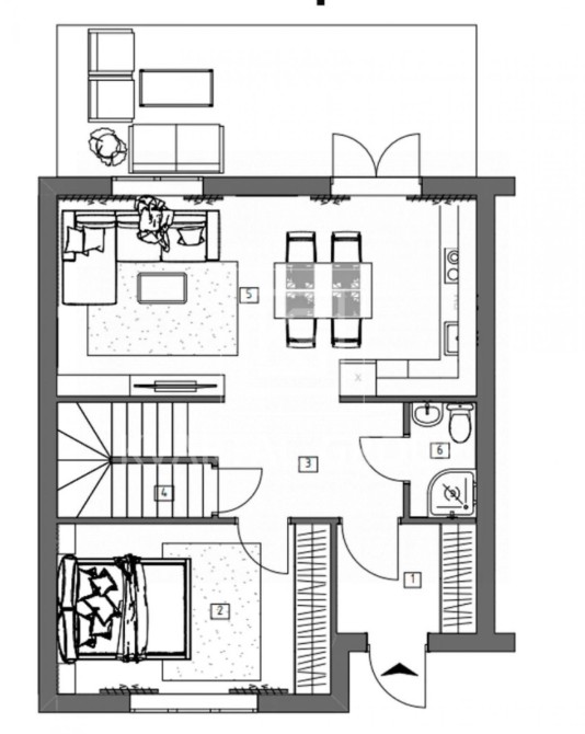 1поверх: кухня-студія, ванна, гостьова кімната(облаштована як тренажерний зал)