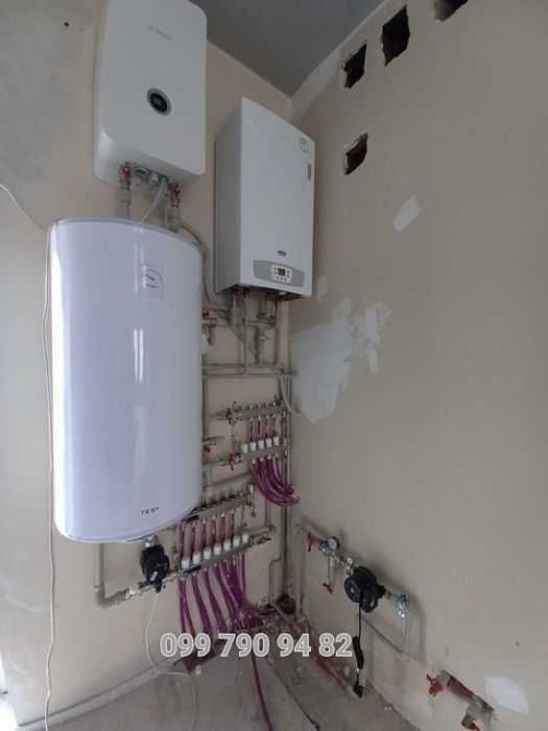 Встановлений бойлер непрямого нагріву, електричний котел, газовий котел, підлога плитка, система тепла підлога.