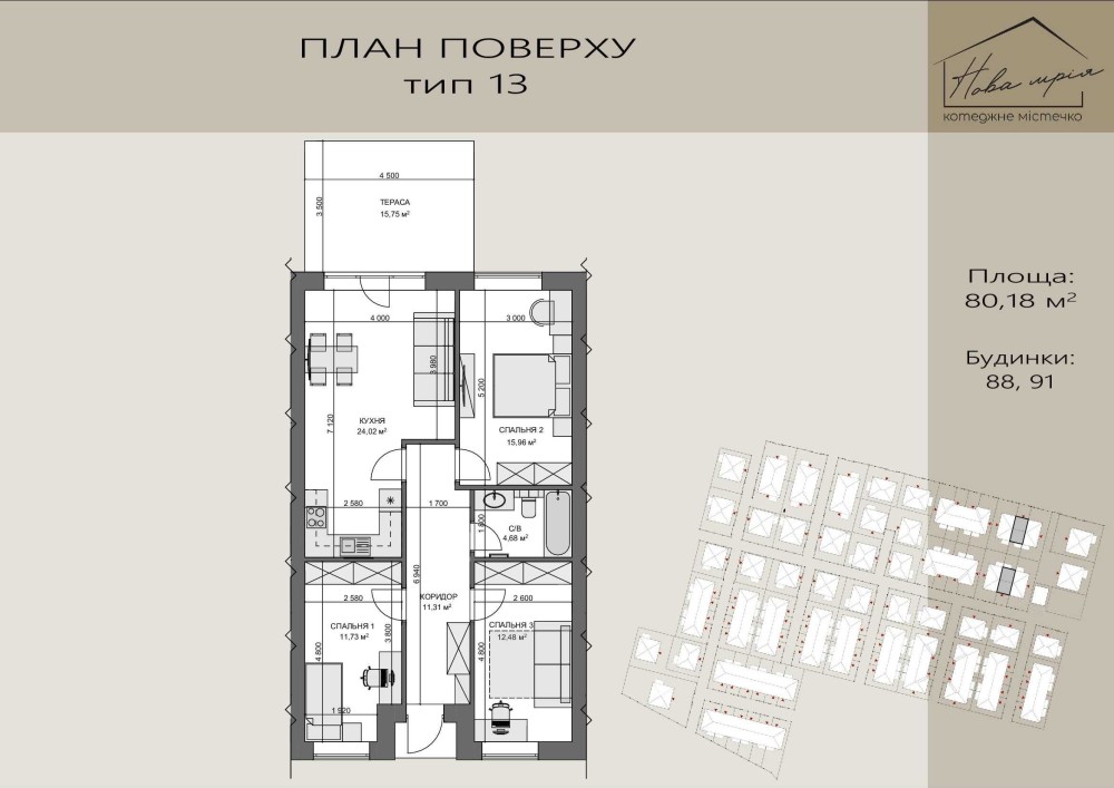 • Загальна площа 80 м2