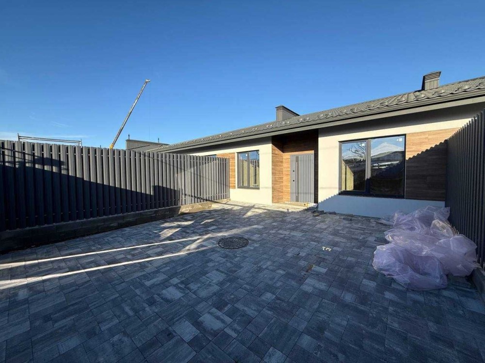 Продаю одноповерховий таунхаус площею 80 м² у сучасному котеджному містечку в Гостомелі (вул. Остромирська, 65). Це внутрішній таун на 3 кімнати з власною ділянкою 2,31 сотки. Будинок цегляний, з газом і центральними комунікаціями. Зроблено фасад, чорнова штукатурка, чистова стяжка, встановлені вікна, двері та дах.
