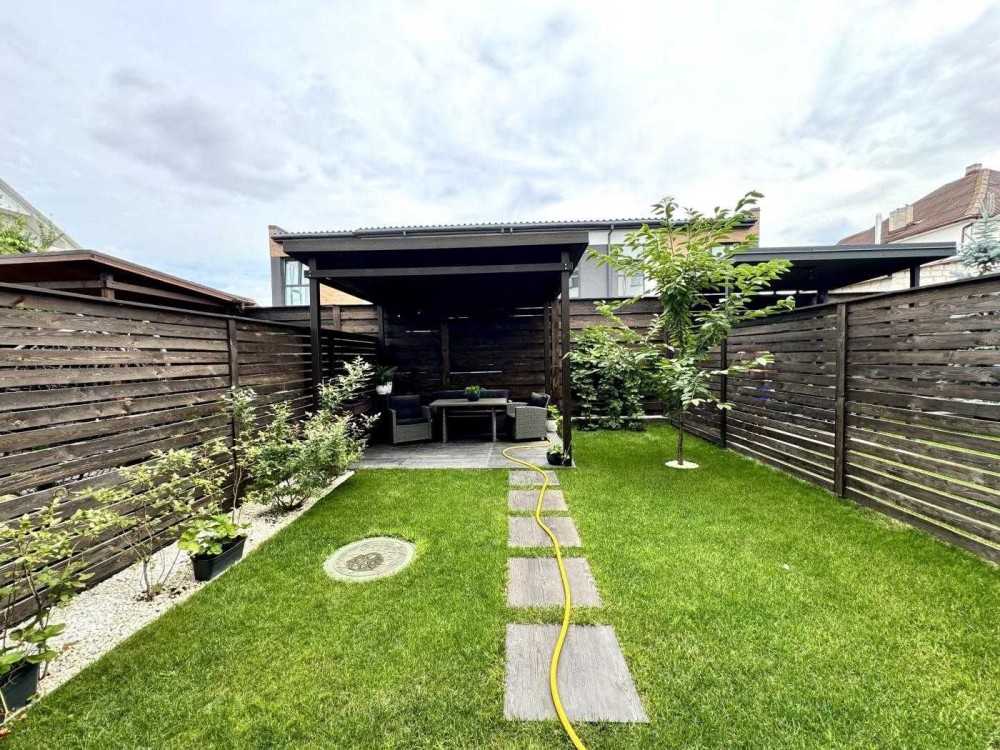 • Закрита територія, газон, молоді дерева, зона BBQ.