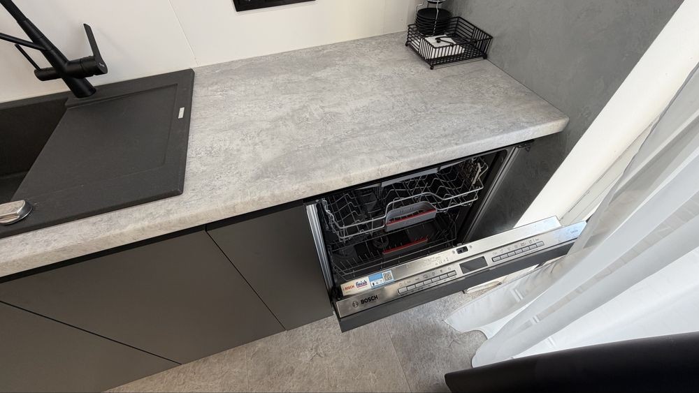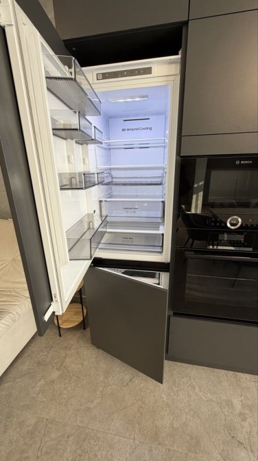 кухня полностью укомплектована: варочная поверхность и духовой шкаф Bosch, посудомоечная машина Bosch, микроволновая печь Bosch, встроенный холодильник Samsung,