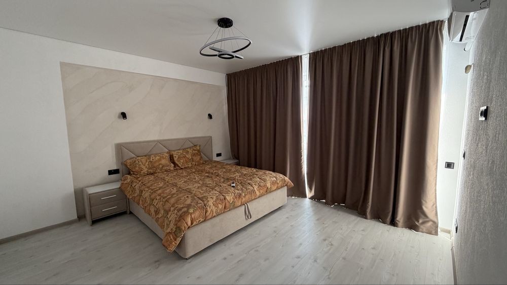 • 2 этаж: 3 комнаты — мастер-спальня с балконом, одна комната без мебели, вторая с большим шкафом; санузел без ванны, чердак, кондиционер CooperHunter