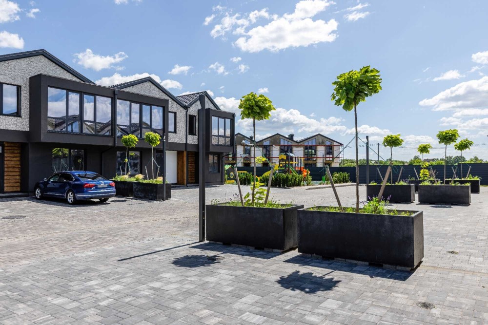 Таунхауси площею від 90 до 153 кв.м, від 3х кімнатного до 5ти кімнатного, кожен зі своїм паркомісцем від 1 до 4 автівок, ділянки від 1,3 до 5 соток.
