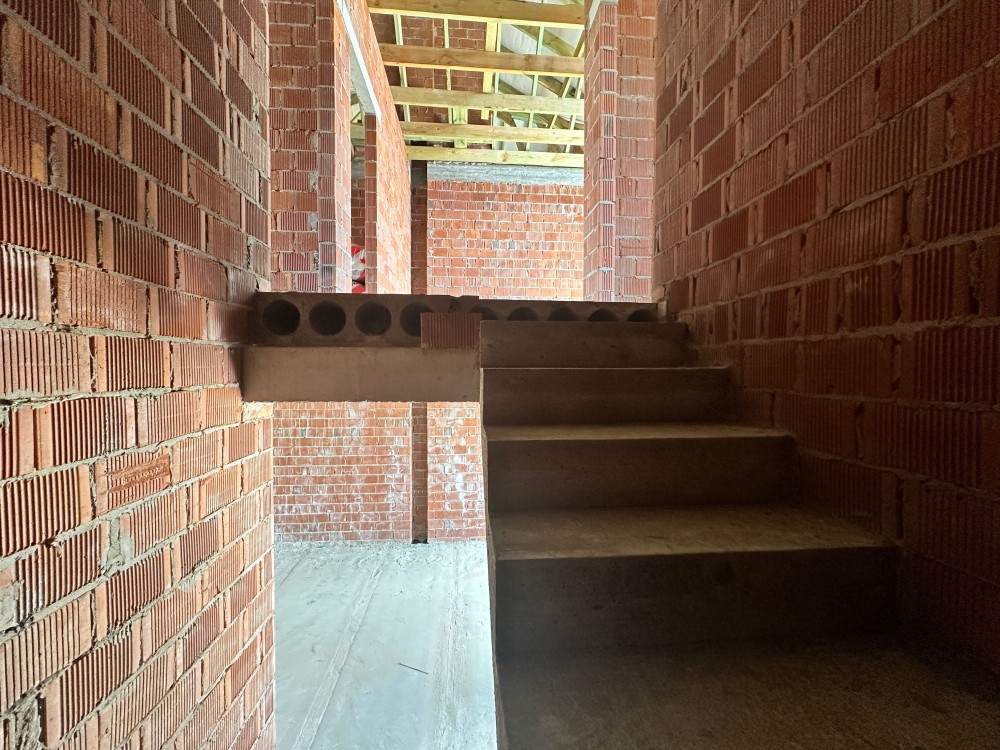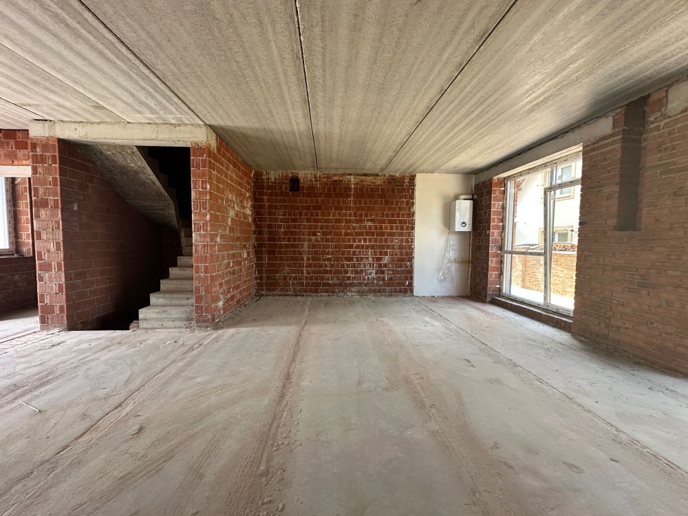 Таунхаус побудовний будинок з керамічної цегли, утеплений 150мм пінополістеролом (щільність 35), з/б плити перекриття між поверхами.