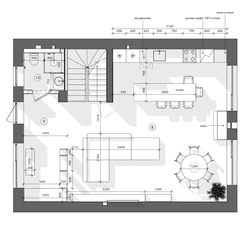 Зручне планування: на першому поверсі розташована простора кухня-вітальня площею 45кв.м з виходом на терасу, гостьовий санвузол, є можливість облаштування гостьової кімнати.