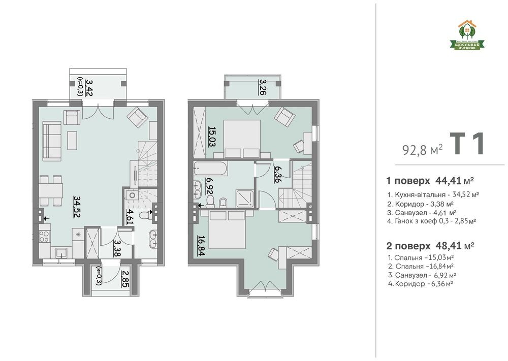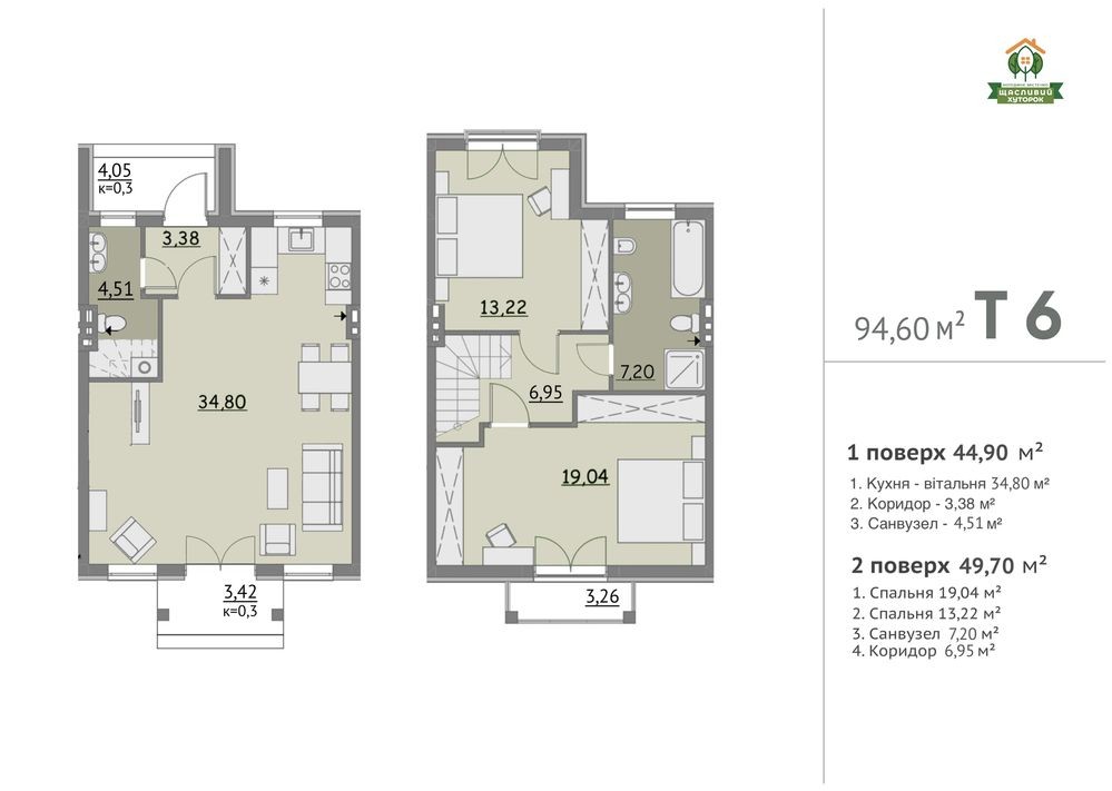 Таунхаус з двориком 94м2