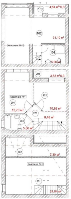 Три поверхи. Бетонні сходи з 1-го по 3-й поверх.