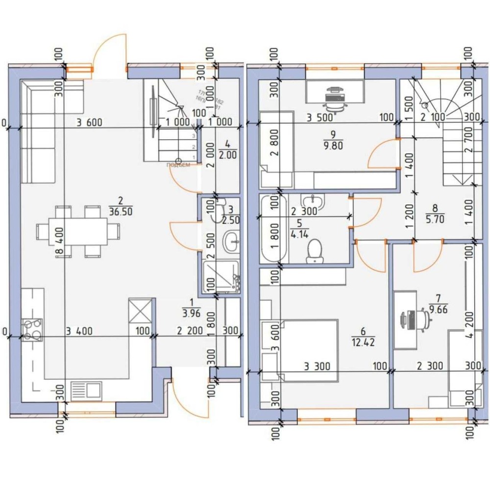 Площа таунхаусів 87 кв.м + мансарда 42 кв.м.