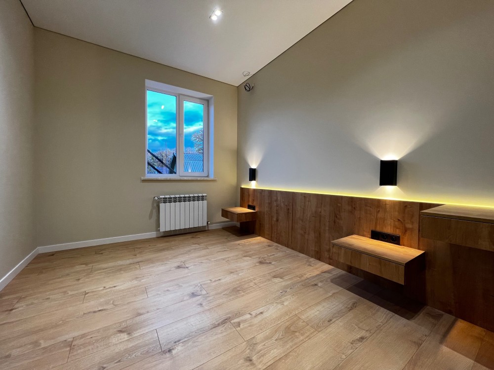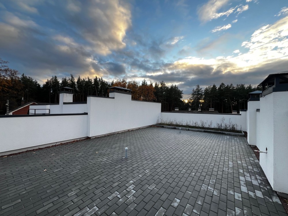 Продаж нового таунхауса в Ірпені, вул.Давидчука. Будинок з якісним ремонтом і готовий до експлуатації; на даху особиста тераса з гарним краєвидом.