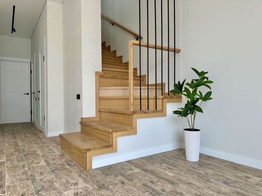 • Якісні дерев’яні сходи з перилами