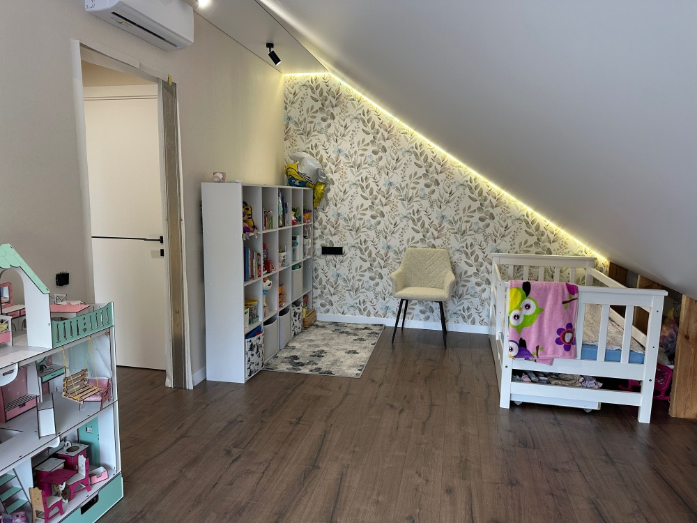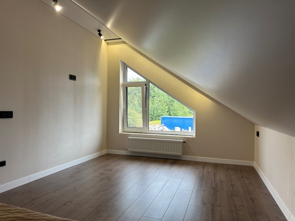 По ремонту і меблям все залишається, на мансардному поверху не дороблено санвузол і не вистачає двох міжкімнатних дверей.