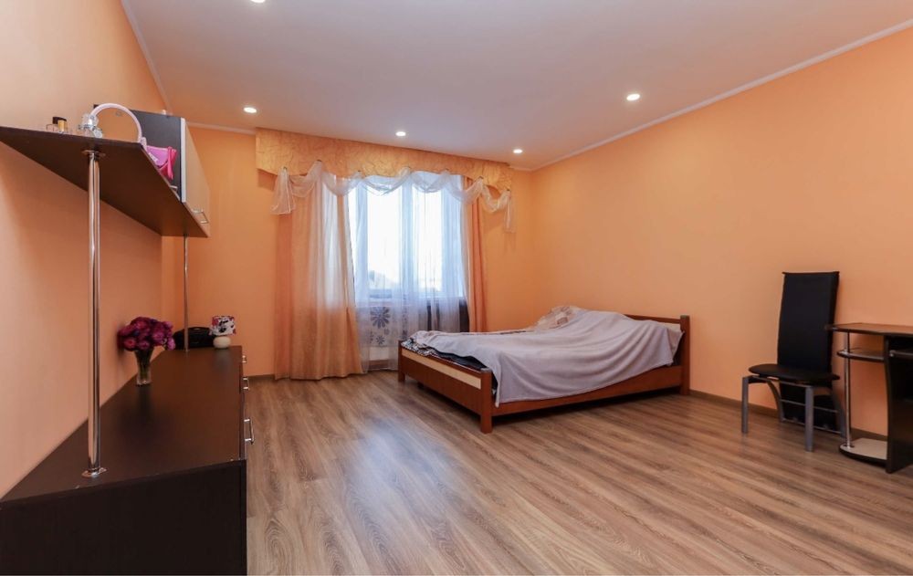 В квартирі є окрема кімната, кухня з відпочинковою зоною яка обладнана ліжком та столиком, просторий санвузол