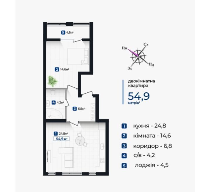 • Загальна площа 55 м2