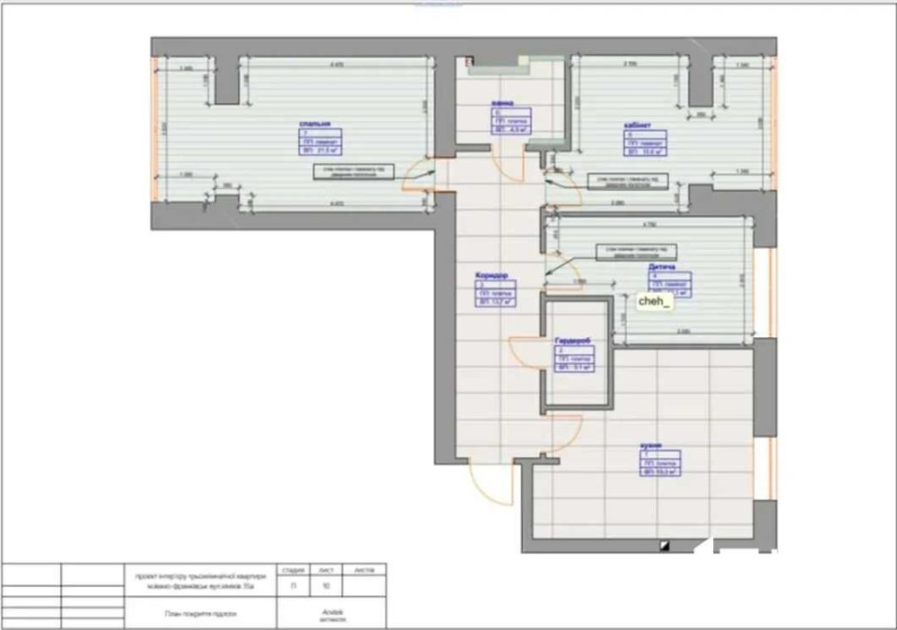 Зроблений додатковий проєкт квартири з переплануванням.
