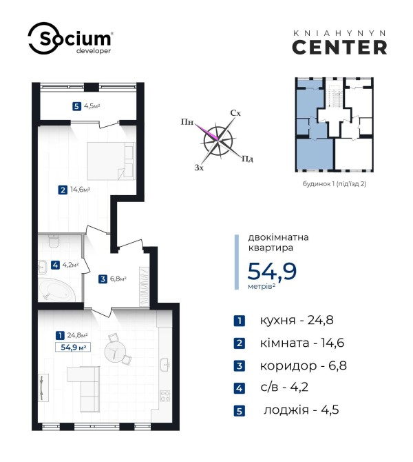 • Загальна площа 54.9 м2