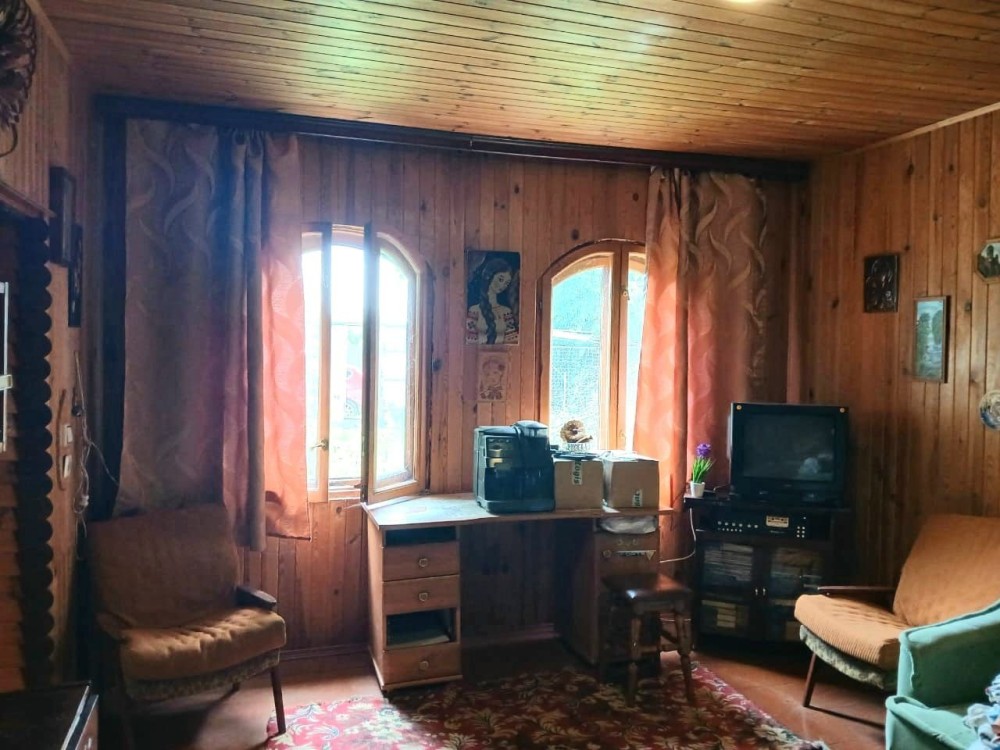 Одна простора кімната, кухня, туалет, веранда та горище. Продається з усіма меблями.