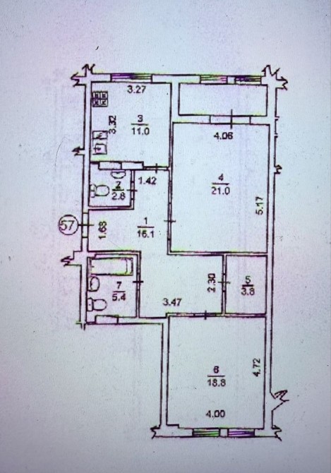 4 кімнат (11 м2 19 м2 21 м2 5,5 м2).