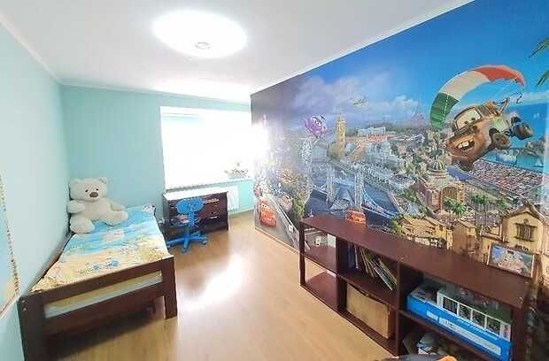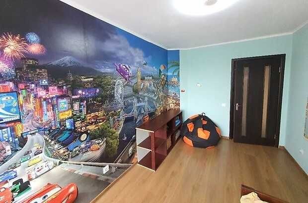 На другому поверсі розташовані дві дитячі кімнати та санвузол, а на першому - велика кухня, лоджія, балкон, вітальня та суміжний санузол. Квартира у відмінному стані з міцним утепленням та натяжними стелями.