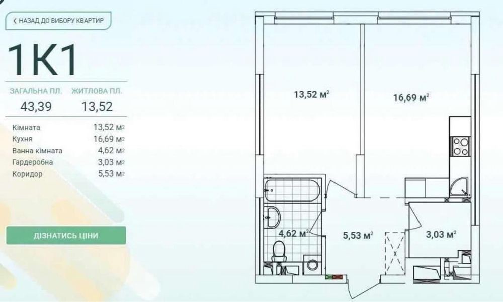 • Загальна площа 44 м2