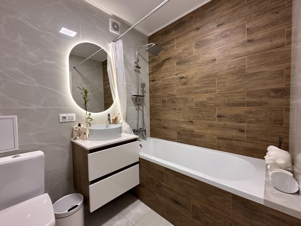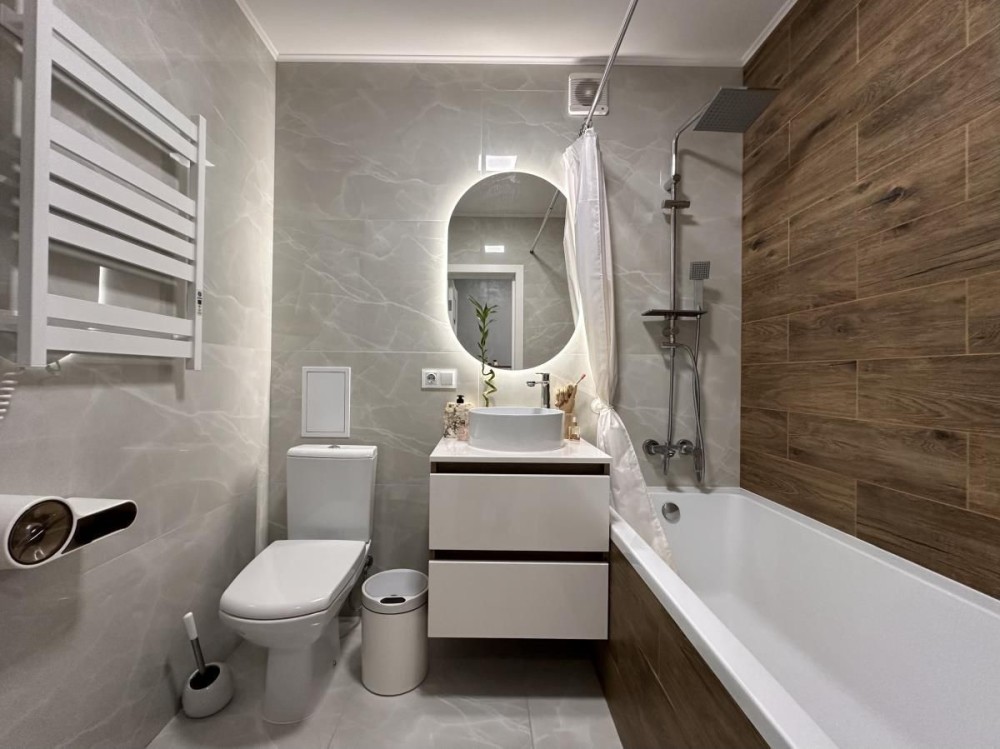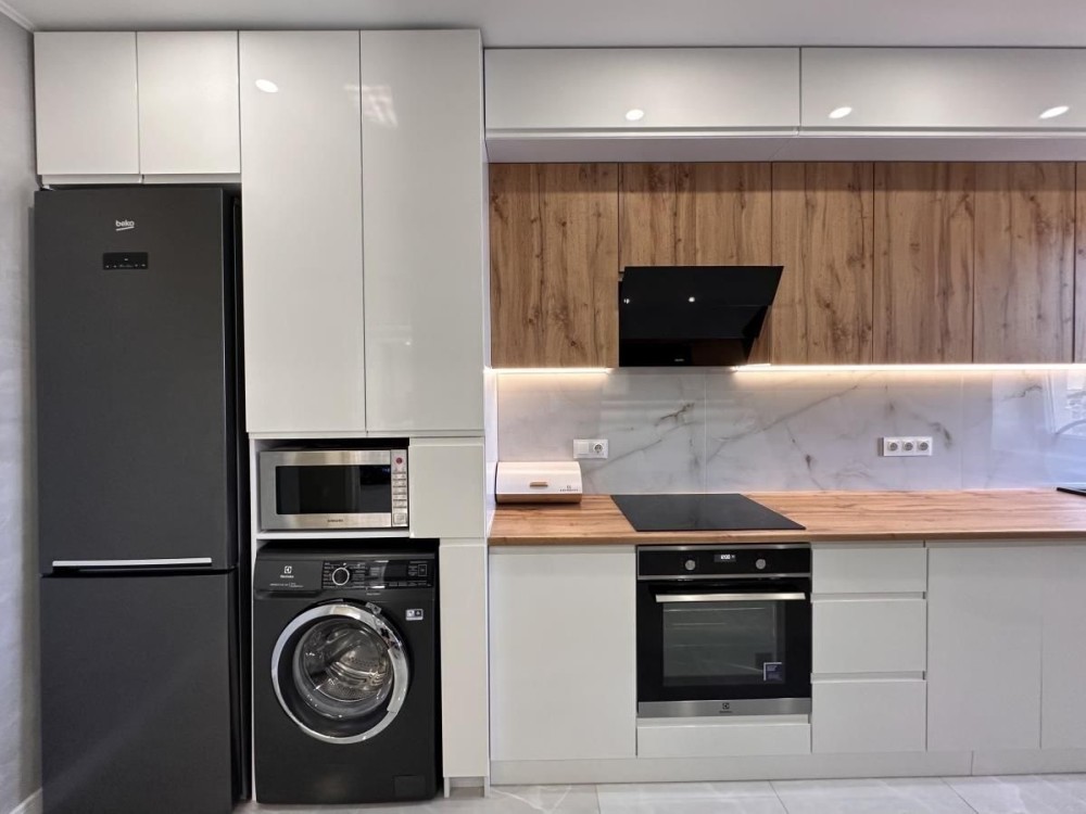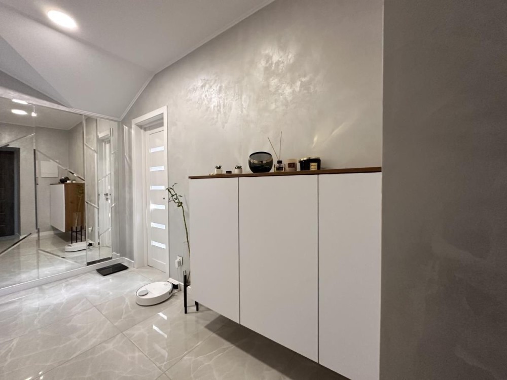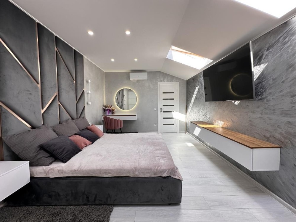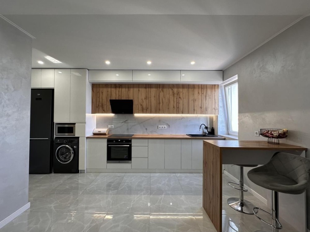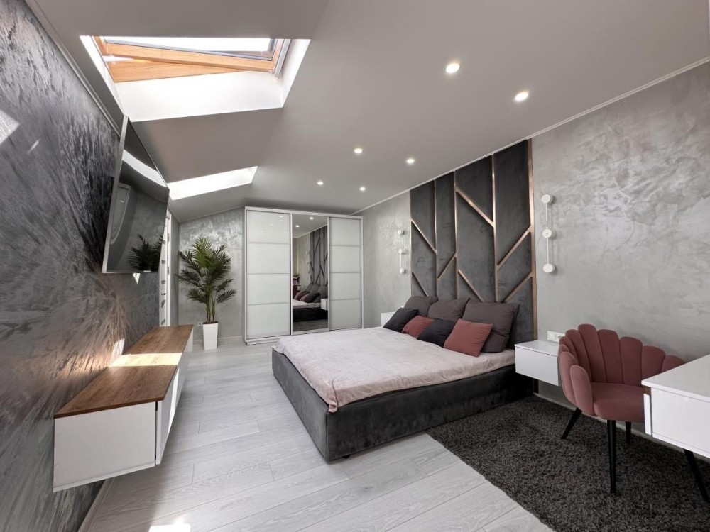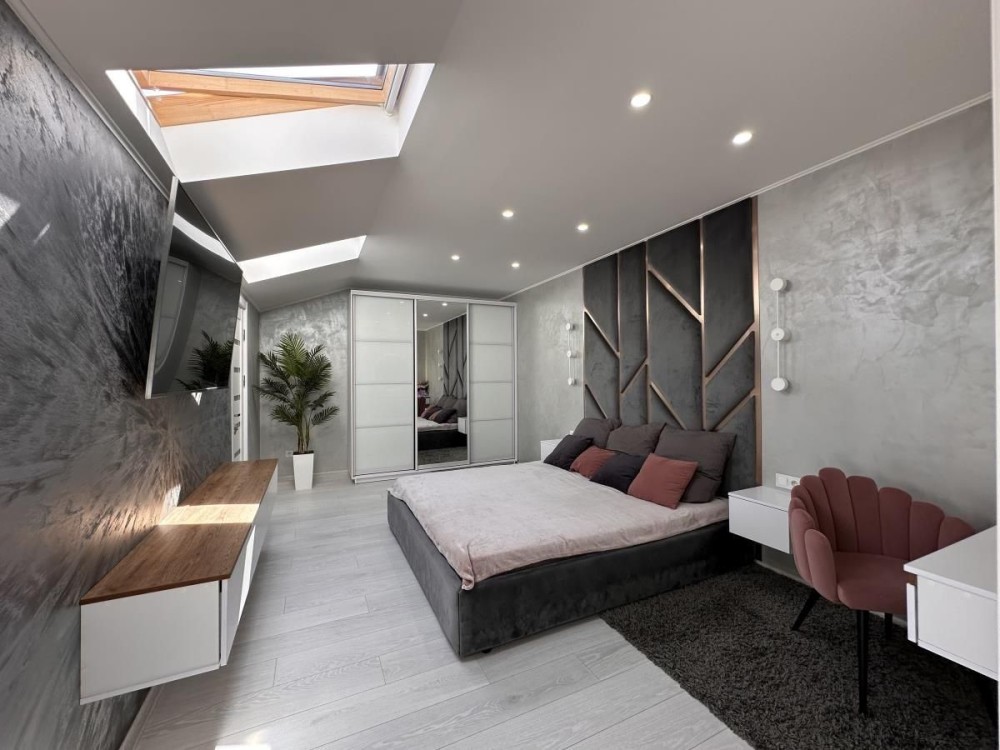 В квартирі зроблений дизайнерський ремонт, підвісні меблі, якісна побутова техніка, підігрів підлоги і утеплений дах.