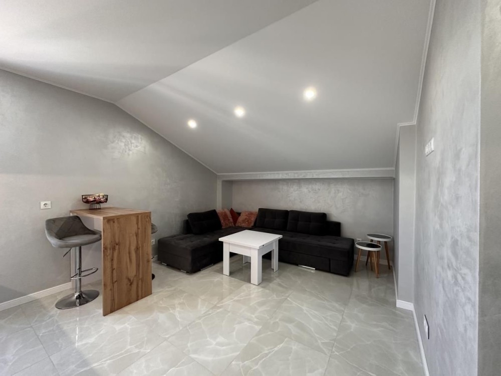 Велика і красива кухня студія 20,2м. З барною стійкою, величезним якісним кутовим диваном, який розкладається і маєте ще одну повноцінну кімнату з двох спальним ліжком.
