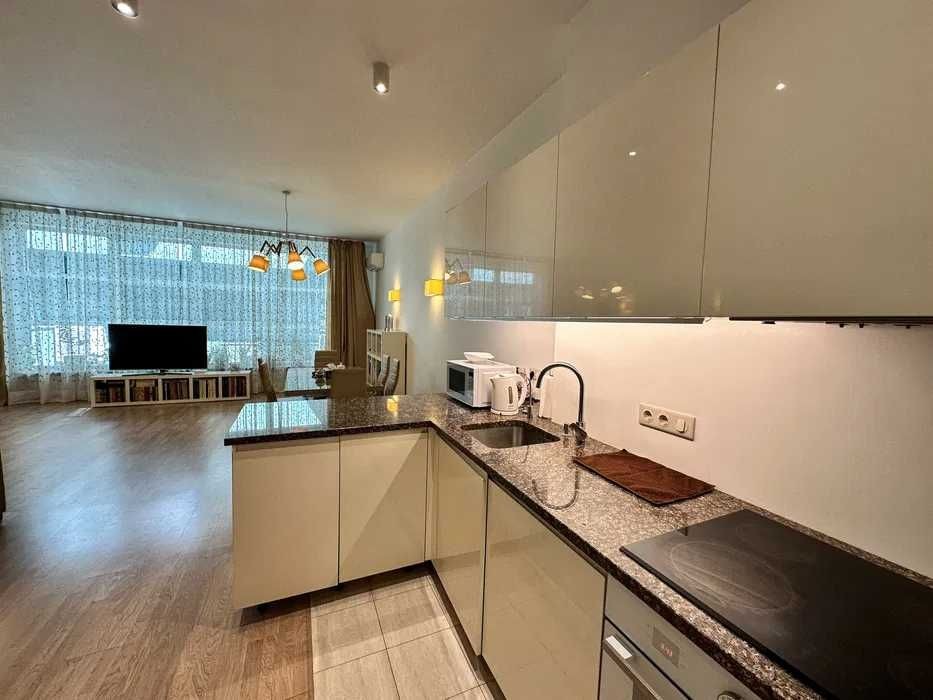 Простора 2к квартира в ЖК Смарагдовий. У квартирі окрема спальня, простора кухня-вітальня, санвузол, гардероб та закрита лоджія. Виконано якісний ремонт. Квартира укомплектована меблями та технікою. Підвіконня – мармур. Зручний поверх. Закрита територія ЖК, цілодобова охорона. Поруч парк та вся необхідна інфраструктура.