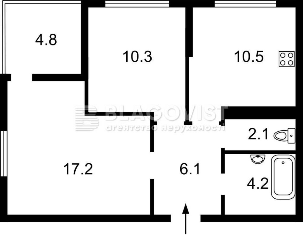 • Площа кухні 10.5 м2
