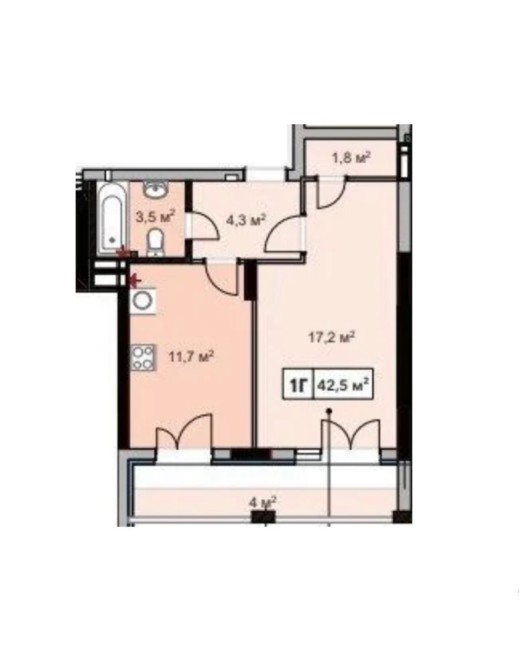 • Загальна площа 42 м2