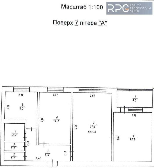 Площа – 59,8 м² (житлова – 39,8 м², кухня – 6 м²)