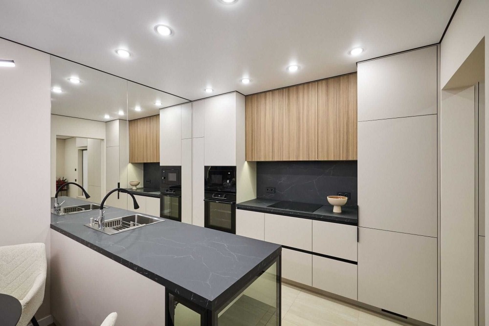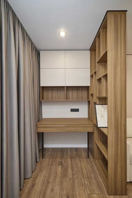 Виконаний досконало з використанням якісних матеріалів. Продумана ергономіка та велика кількість місць для зберігання в кожній кімнаті роблять цю квартиру максимально комфортною для проживання.