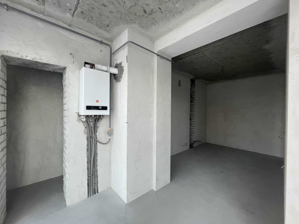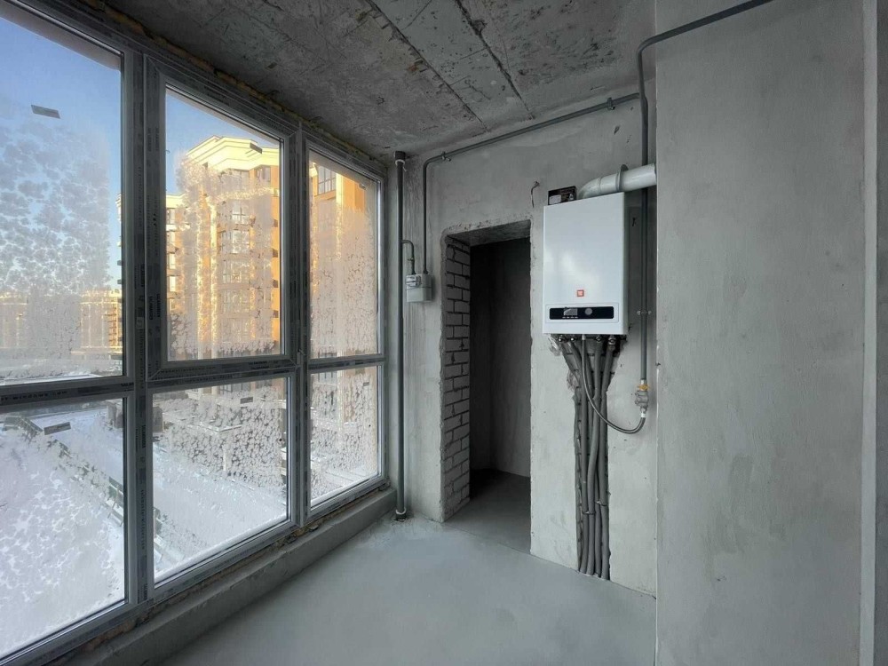 Для опалення встановлено індивідуальний газовий 2-контурний котел. Виконані основні оздоблювальні роботи: розведена електрика, стяжка, штукатурка, встановлені радіатори та металопластикові вікна, на лоджії облаштована тепла підлога.