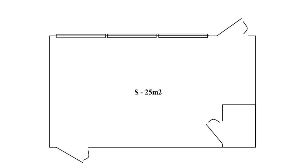 Загальна площа 25м2, прямокутної форми, дві вхідні групи, с/в, широкий фасад з великими вікнами.