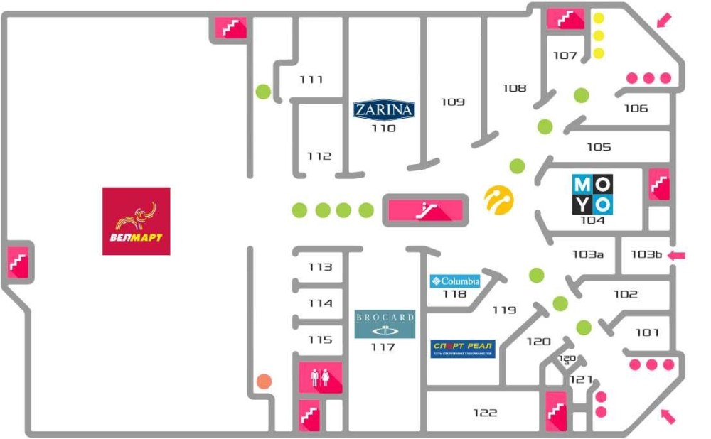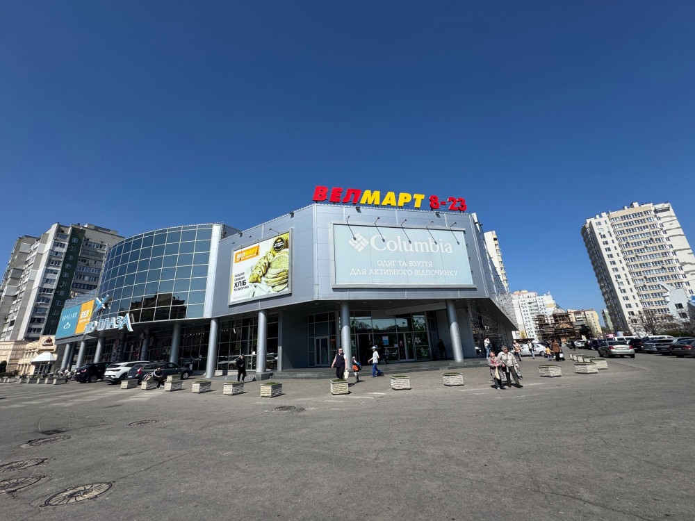 Велика прохідність людей, на першому поверсі продуктовий "Велмарт", на другому дитячий розважальний центр, кінотеатр та багато іншого.