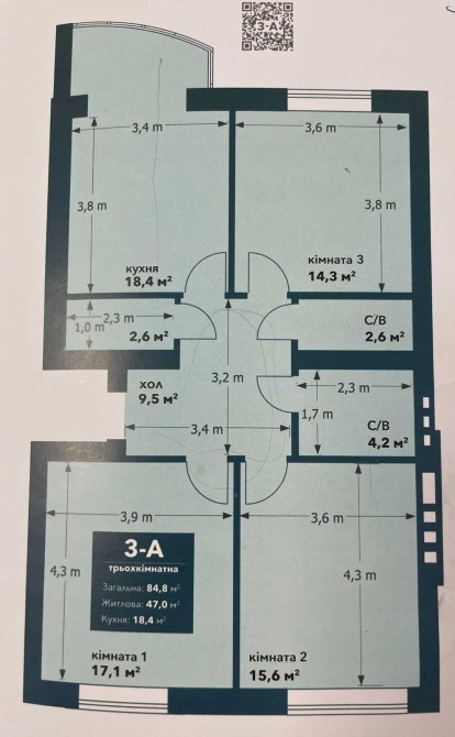 • Загальна площа 84.8 м2