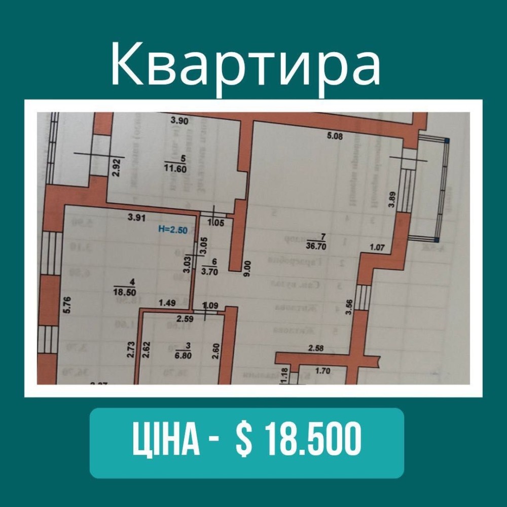 Ціна нерухомості становить 18 500$.