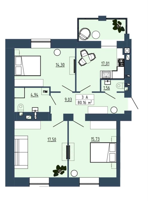 • Загальна площа 81 м2