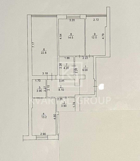 Простора 3к квартира має загальну площу 91,6 м2.