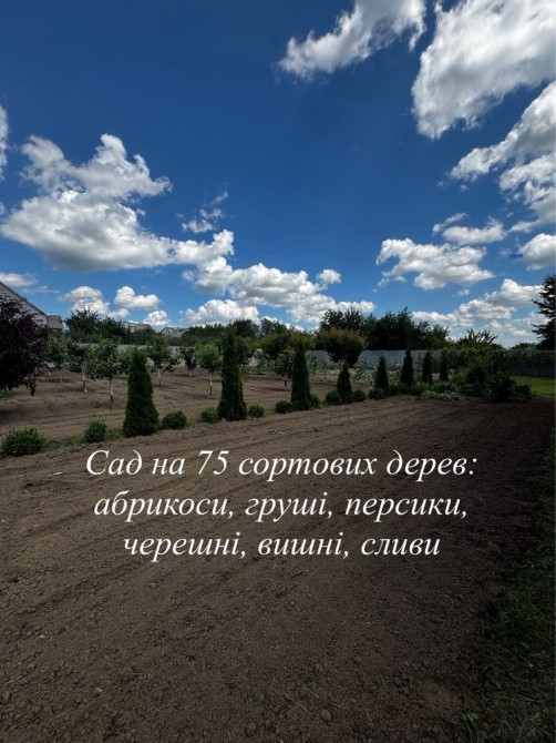 Величезна ділянка: 20 соток родючої землі, що перетворилася на справжній фруктовий рай. Тут ростуть виноград, лохина та 75 сортових дерев: абрикоси, груші, яблуні, черешні, вишні, сливи і персики. Ділянка також прикрашена декоративними рослинами, туями, самшитом та іншими елементами ландшафтного дизайну.
