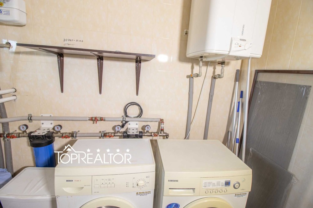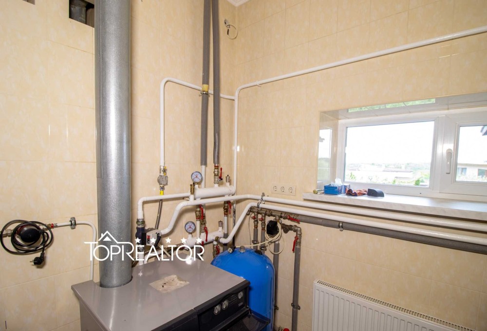 Дом оборудован всей необходимой техникой, интернетом, сигнализацией и видеонаблюдением. В доме установлены водяные теплые полы, есть трехфазное электричество и собственная скважина глубиной 30 метров. Автономное отопление газовый котёл Baxi SLIM 33 кВт + твёрдотопливный котёл Viessmann 60 кВт, что гарантирует минимальные расходы на содержание дома. Канализация- септик.